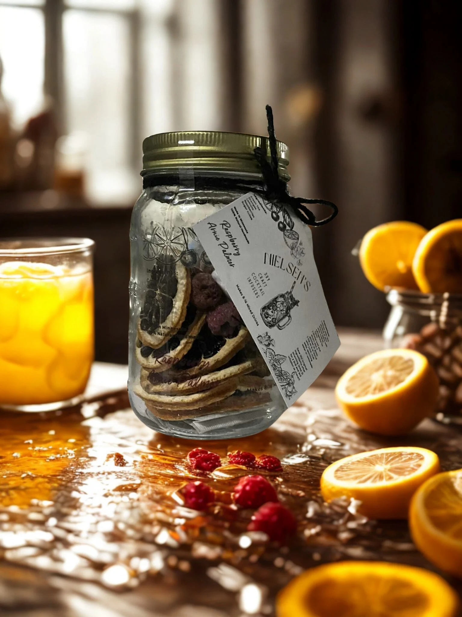 🌿Ingredients: Green Tea, Oranges, Lemons, Raspberries, and Sugar Cubes.