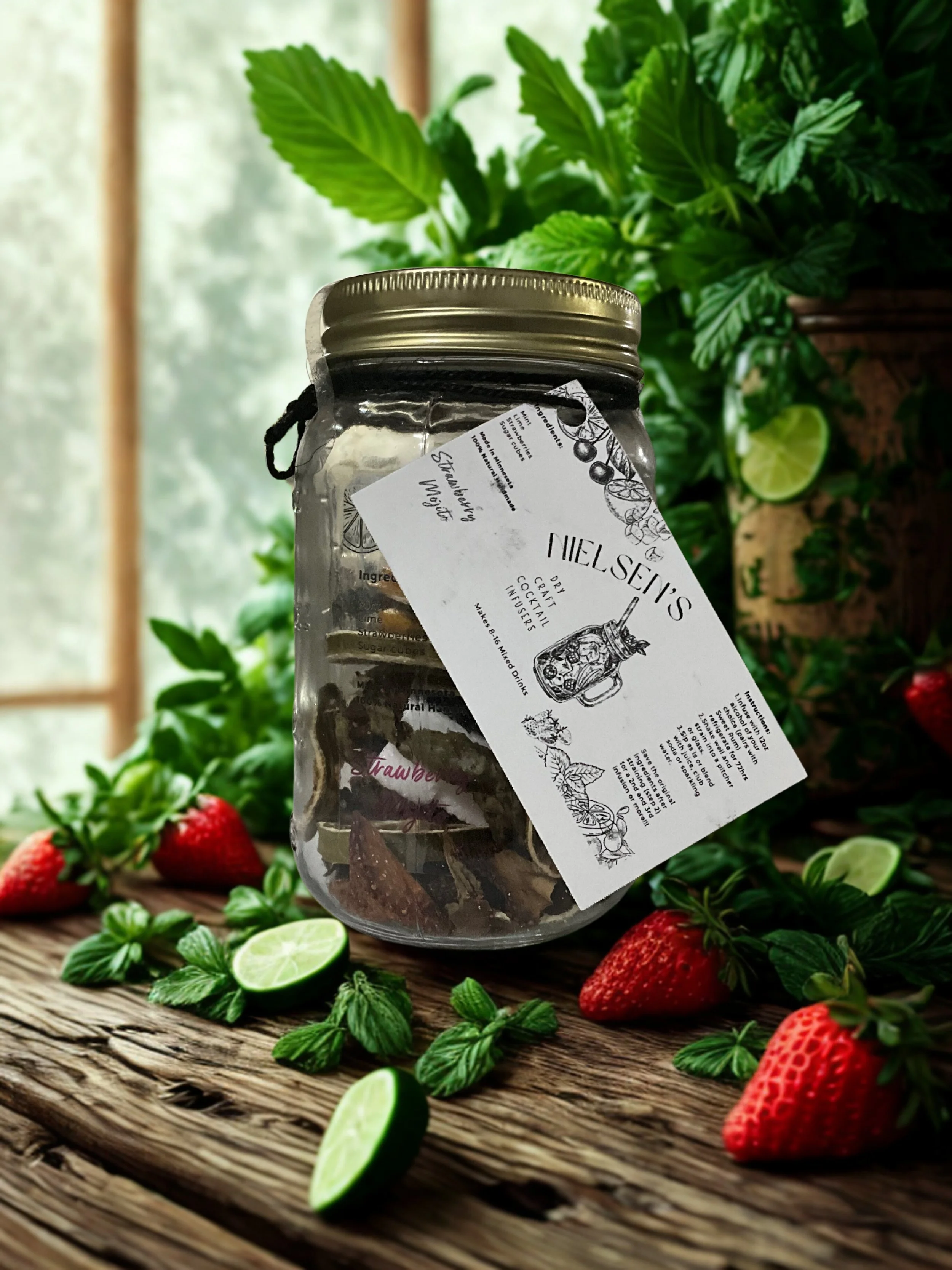 Ingredients: Mint, Lime, Strawberries, and Sugar Cubes.